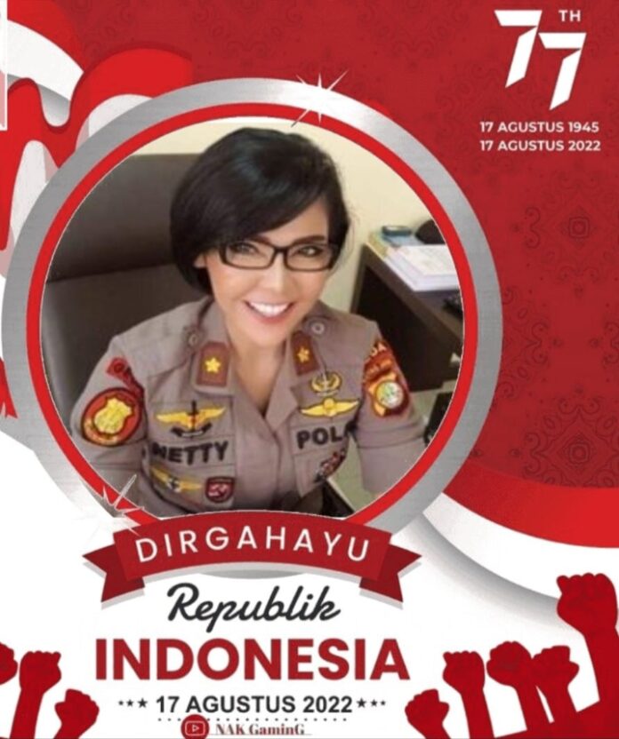 Netty Rosdiana kapolsek Menteng Metrojaya menyampaikan: Selamat HUT Kemerdekaan RI ke-77, 17 Agustus 2022, Pertahankan Kepolisian Presisi,” Rabu 17 Agustus 2022.