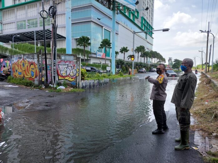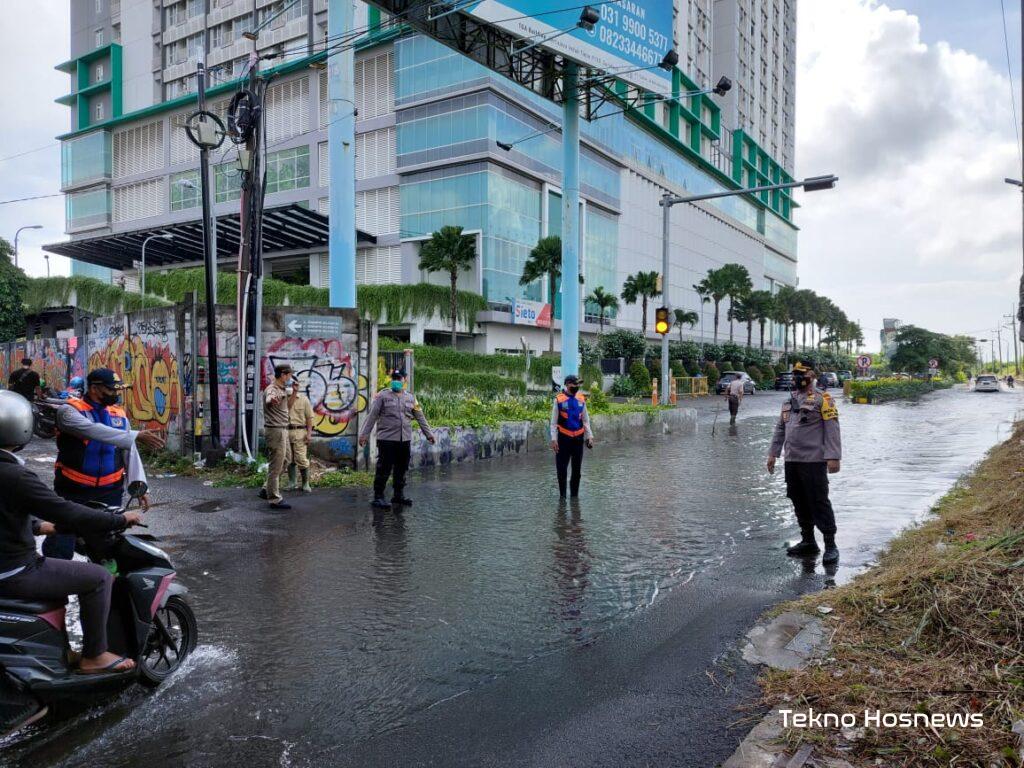 “Personil melakukan penertiban lalu lintas yang sempat tersendat dikarenakan genangan air sekitar 20-30 cm tepatnya di samping Apartement Balle Hinggil Jl.Medokan Semampir Indah Surabaya, akibat curah hujan tadi malam, ” jelas Kapolsek Kompol M. Sholeh.