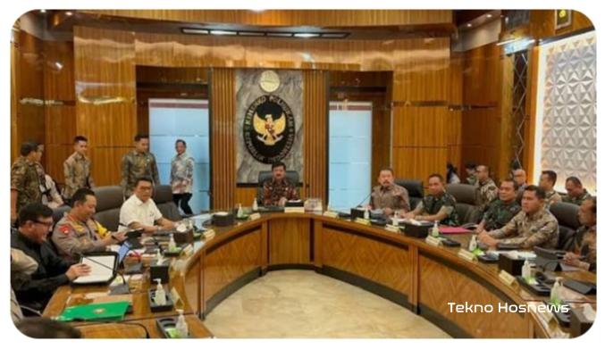Dilokasi rapat terlihat Menko Polhukam Hadi Tjahjanto memimpin rapat tersebut. Rapat itu juga diikuti oleh Menteri Dalam Negeri (Mendagri) Tito Karnavian, Jaksa Agung Burhanuddin ST, Panglima TNI Jenderal Agus Subiyanto dan Kapolri Jenderal Listyo Sigit Prabowo.