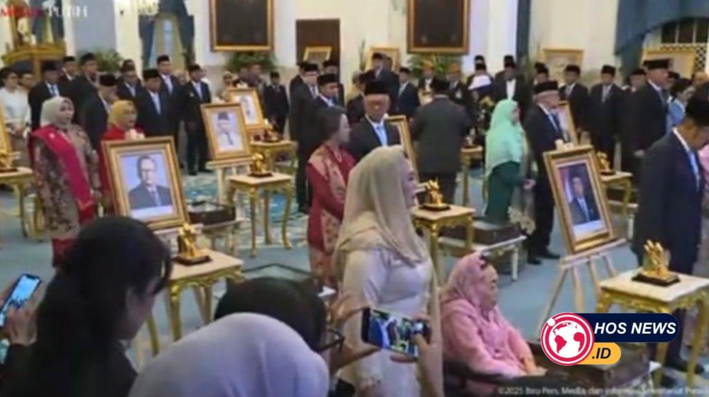 JAKARTA – Presiden Prabowo Subianto berikan gelar pahlawan nasional pada Presiden ke-2 RI Soeharto di Istana Negara. Nampak hadir Siti Hardiyanti Rukmana atau Tutut Soeharto dan Bambang Trihatmodjo berdiri di samping foto Soeharto dalam prosesi upacara penganugerahan gelar pahlawan nasional.