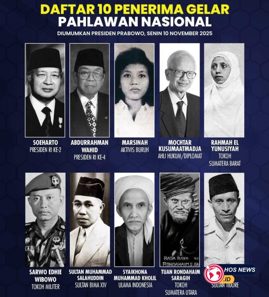 Beberapa nama yang mendapat penghargaan gelar pahlawan nasional diantaranya, Presiden ke-4 RI Abdurrahman Wahid alias Gus Dur, Presiden ke-2 RI Soeharto dan Syaikhona Mohammad Kholil Bangkalan Ulama Kharismatik legendaris Madura Jawa Timur,” ujar Hosen Ketua KAKI Jatim,” Selasa (11/11/2025).