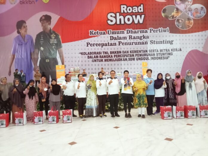 BANJARMASIN, HOSNEWS.ID – Ketua Umum Dharma Pertiwi Ibu Diah Erwiany Trisnamurti Hendrati (Hetty Andika Perkasa) beserta rombongan melaksanakan kegiatan Road Show di Provinsi Kalimantan Selatan dalam rangka percepatan penurunan Stunting yaitu “Kolaborasi TNI, BKKBN Serta Mitra Kerja Dalam Rangka Percepatan Penurunan Stunting Untuk Mewujudkan SDM Unggul Indonesia”.