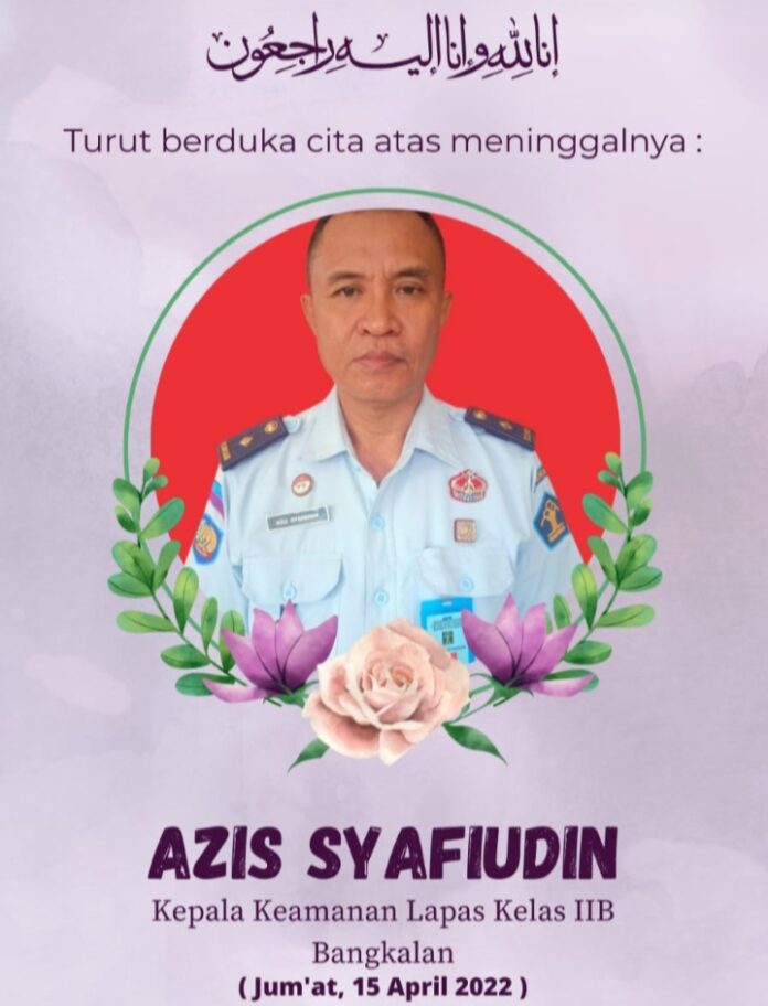 Komite Anti Korupsi Indonesia (KAKI) DPD Bangkalan. Turut berduka cita atas meninggalnya bapak Aziz Syafiudin Kepala Keamanan Lapas Kelas IIB Bangkalan semoga amal ibadahnya diterima sisi Allah SWT pada Jumat 15 April 2022.