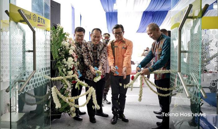 KABANJAHE-Kepala Kantor Wilayah IV Bank BTN Muhamad Amin Sholeh didampingi Kepala Badan Keuangan dan Aset Daerah Kabupaten Karo Dr.Drs.Eddi Surianta, M.Pd, Kepala Cabang BTN Medan Carly Tambunan, Kepala Cabang Pembantu BTN Kabanjahe Ein Valencia, Kepala Bagian Perizinan OJK Kantor Regional V Sumatera Bagian Utara Abdullah Fahmi Lubis, serta Asisten Direktur Kantor Perwakilan Bank Indonesia Sumut Siti Senorita melakukan pengguntingan pita sebagai pertanda diresmikannya Kantor Cabang Pembantu BTN Kabanjahe, Jumat (26/8/2022) di Jalan Veteran Kabanjahe, Kabupaten Karo.