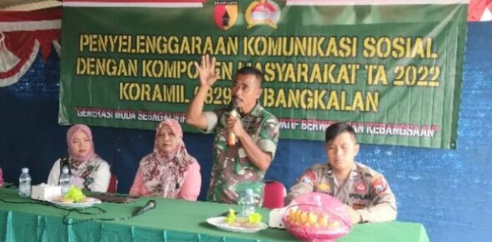 Bangkalan – Koramil 0829/01 Kota Bangkalan melaksanakan kegiatan Komunikasi Sosial (Komsos) dengan komponen masyarakat Tahun 2022 di Makoramil 0829/01 Bangkalan pada hari Kamis (08/09/2022), Komsos digelar dengan tema “Generasi muda sebagai wira usaha milenial, inovatif berwawasan kebangsaan ” Dihadiri oleh Camat Kota Cicik Fidiah, SE, Kepala UPT Puskesmas Kota Senenan, dr. Wiwit Mayasari, Kasat Bhinmas Polres Bangkalan yang diwakili oleh Briptu Satria Herlambang Bhabinkamtibmas Desa Sembilangan.