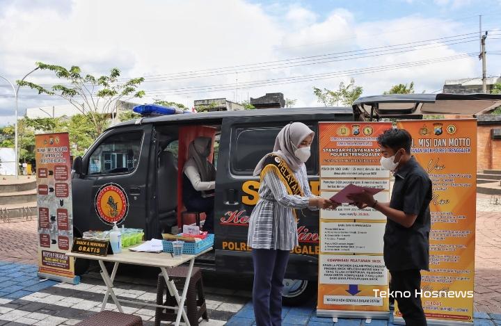 Sedikit berbeda, pelayanan SKCK yang biasanya digelar secara stationer di ruang pelayanan Mapolres, kini bisa dinikmati masyarakat luas di berbagai lokasi.