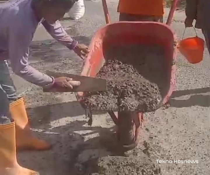 Rokib Warga desa pocong kecamatan Tragah dan anggota (LSM gerbang Mas ) antusias dalam memperbaiki jalan kabupaten ruas Desa Pocong dengan bergotong-royong untuk melakukan tambal sulam jalan berlubang demi keselamatan pengendara.