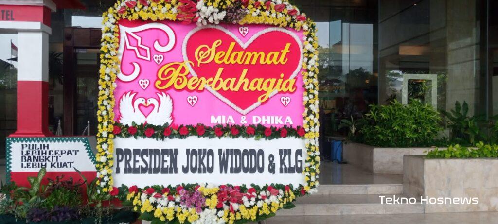 “Papan bunga ucapan selamat berbahagia bagi kedua mempelai datang dari Presiden RI Jokowi, Ketua DPR RI, Dr, HC, Puan Maharani.