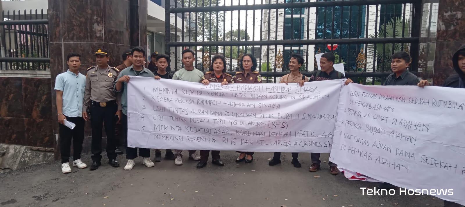 Adapun tuntutan aksi massa tersebut dalam pernyataan sikapnya adalah, meminta kepada pihak Kejatisu untuk melakukan penyidikan serta penyelidikan atas adanya dugaan KKN yang terjadi di Kabupaten Asahan serta memanggil dan melakukan pemeriksaan terhadap Bupati Asahan dan seluruh Camat yang ada di Asahan.