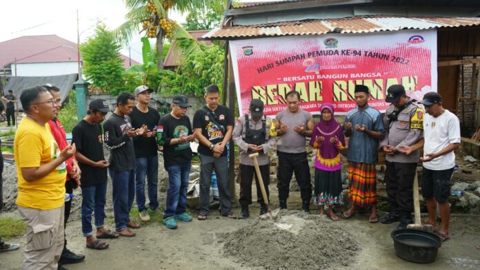 PALU – Dalam rangka memperingati hari Sumpah Pemuda ke-94 tahun 2022, Polda Sulteng bersama komunitas vespa kota Palu melaksanakan kegiatan sosial dengan membangun rumah seorang janda yang berada di desa Kalukubula Biromaru Kabupaten Sigi (28/10/2022).