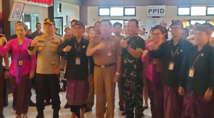 TABANAN – Komandan Kodim (Dandim) 1619/Tabanan Letkol Inf Riza Taufiq Hasan, S.I.P., yang diwakili Pasi Intel Komando Distrik Militer (Kodim) 1619/Tabanan Kapten Inf I Ketut Suparta hadiri pelantikan Panitia Pemilihan Kecamatan (PPK) Se-Kabupaten Tabanan di ruang rapat Kantor KPU Kabupaten Tabanan Jalan Arjuna Nomer Desa Delod Peken Kecamatan Tabanan, Senin, (02/01/2022). Pelantikan PPK ini untuk pemilihan umum tahun 2024.