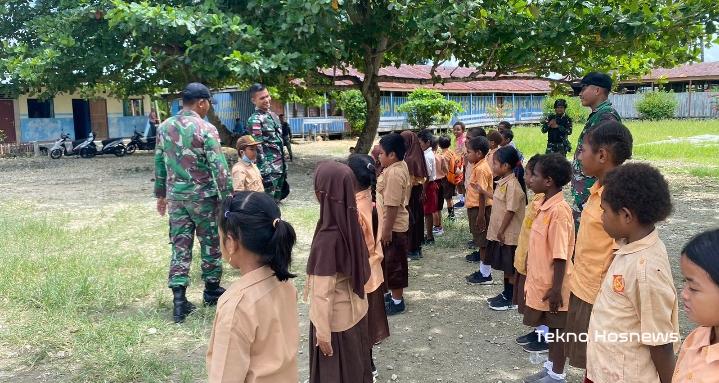 Personel Pos Arso Kota Satgas Pamtas RI-PNG Yonif 132/BS menjadi tenaga pengajar di SD Inpres Yanama, kegiatan tersebut merupakan program Satgas Yonif 132/BS mengingat jumlah tenaga pendidik di perbatasan masih minim.