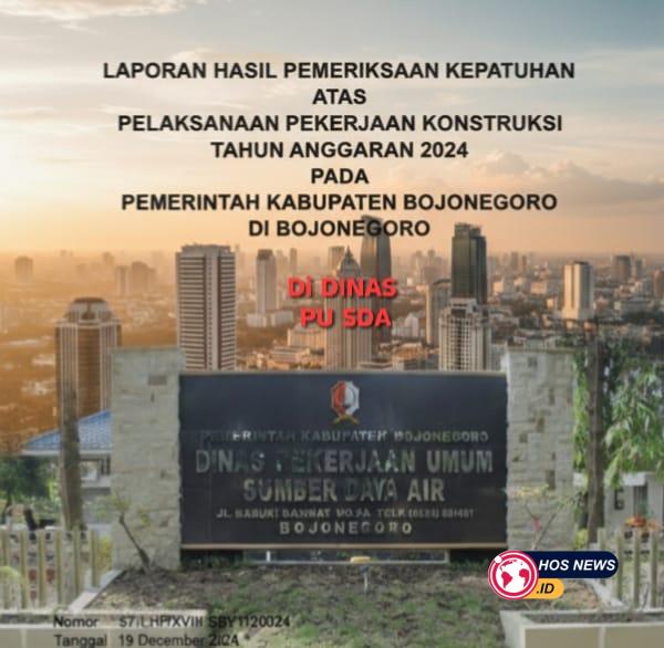 BOJONEGORO, hosnews.id – 31 Oktober 2025 — Dunia konstruksi di Kabupaten Bojonegoro kembali diguncang kabar mengejutkan. Hasil audit resmi Badan Pemeriksa Keuangan Republik Indonesia (BPK RI) Perwakilan Provinsi Jawa Timur menemukan adanya dugaan manipulasi dan potensi korupsi dalam pelaksanaan sejumlah proyek pekerjaan konstruksi tahun anggaran 2024 di lingkungan Dinas Pekerjaan Umum Sumber Daya Air (PUSDA) Bojonegoro.