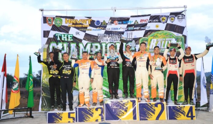 Kalimantan Selatan, Hosnews.id Menyudahi Kejuaraan Nasional (Kejurnas) Round 2 South Borneo Rally di Kabupaten Tapin, Kalimantan Selatan, Minggu (6/8/2023), Wakil Gubernur (Wagub) Sumatera Utara (Sumut) Musa Rajekshah raih peringkat lima secara umum juga kelas M1 dengan total waktu 1:22:11.6.