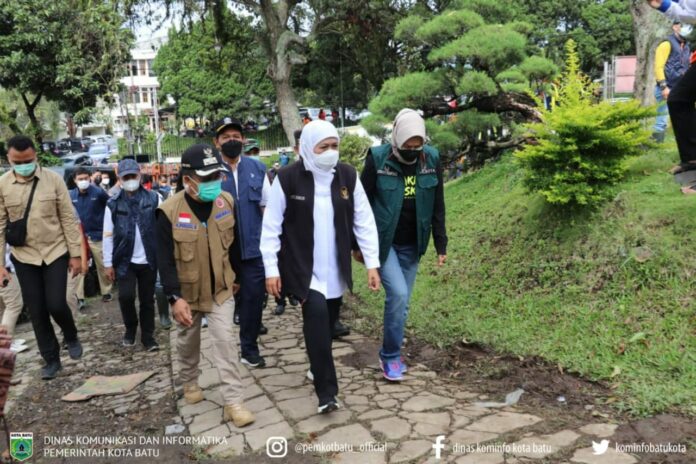 Gubernur Jawa Timur, Khofifah Indar Parawansa, didampingi Wali Kota Batu Hj. Dewanti Rumpoko, dan Forkopimda Kota Batu meninjau kembali lokasi bencana di Desa Bulukerto, Jumat (05/11) pagi.