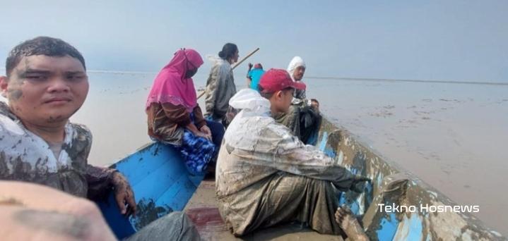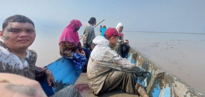 “Perahu kami terjebak lumpur karena air laut surut ada 1 jam lebih,”kata Christin.