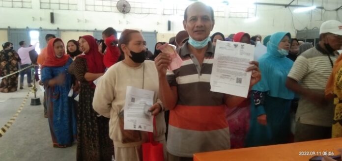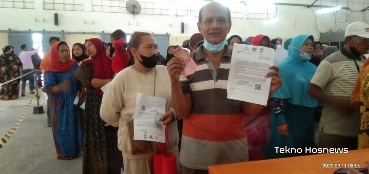SURABAYA- Warga penerima Bantuan Langsung Tunai (BLT) Bahan Bakar Minyak (BBM) membeludak di area Kantor Pos, Jl. Kebon Rojo No.10, Krembangan Sel., Kec. Krembangan, Kota SBY, Jawa Timur , Minggu pagi (11/9/2022). .