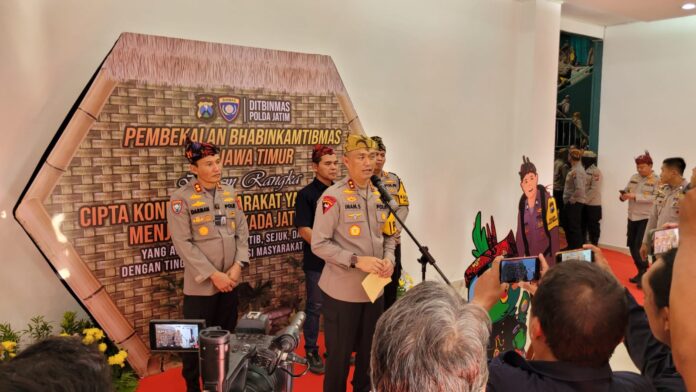 SURABAYA – Irjen Pol Drs Imam Sugianto, M.Si Kepala Kepolisian Daerah Jawa Timur resmi menutup kegiatan pembekalan Bhayangkara Pembina Keamanan dan Ketertiban Masyarakat (Bhabinkamtibmas dalam rangka Pemilukada serentak di Jawa Timur tahun 2024.