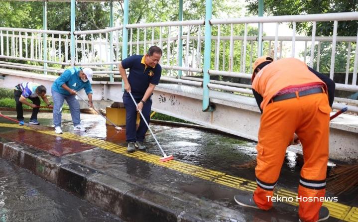 “Hari ini, secara serentak kita membersihkan titik-titik tertentu di Jalan Protokol seperti trotoar, halte, fly over, dan lainnya dengan melibatkan UKPD terkait, Camat, Lurah, dan elemen masyarakat,” ungkap Walikota Kota Administrasi Jakarta Utara, Ali Maulana Hakim didampingi Wakil Walikota Kota Administrasi Jakarta Utara, Juaini saat monitoring kegiatan bersih-bersih trotoar dan fly over di sepanjang Jalan Yos Sudarso, Minggu (11/12).