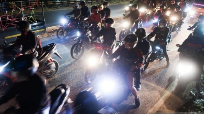 Berdasarkan pantauan di lapangan, pemudik sepeda motor melakukan perjalanan pulang kampung selepas berbuka puasa.