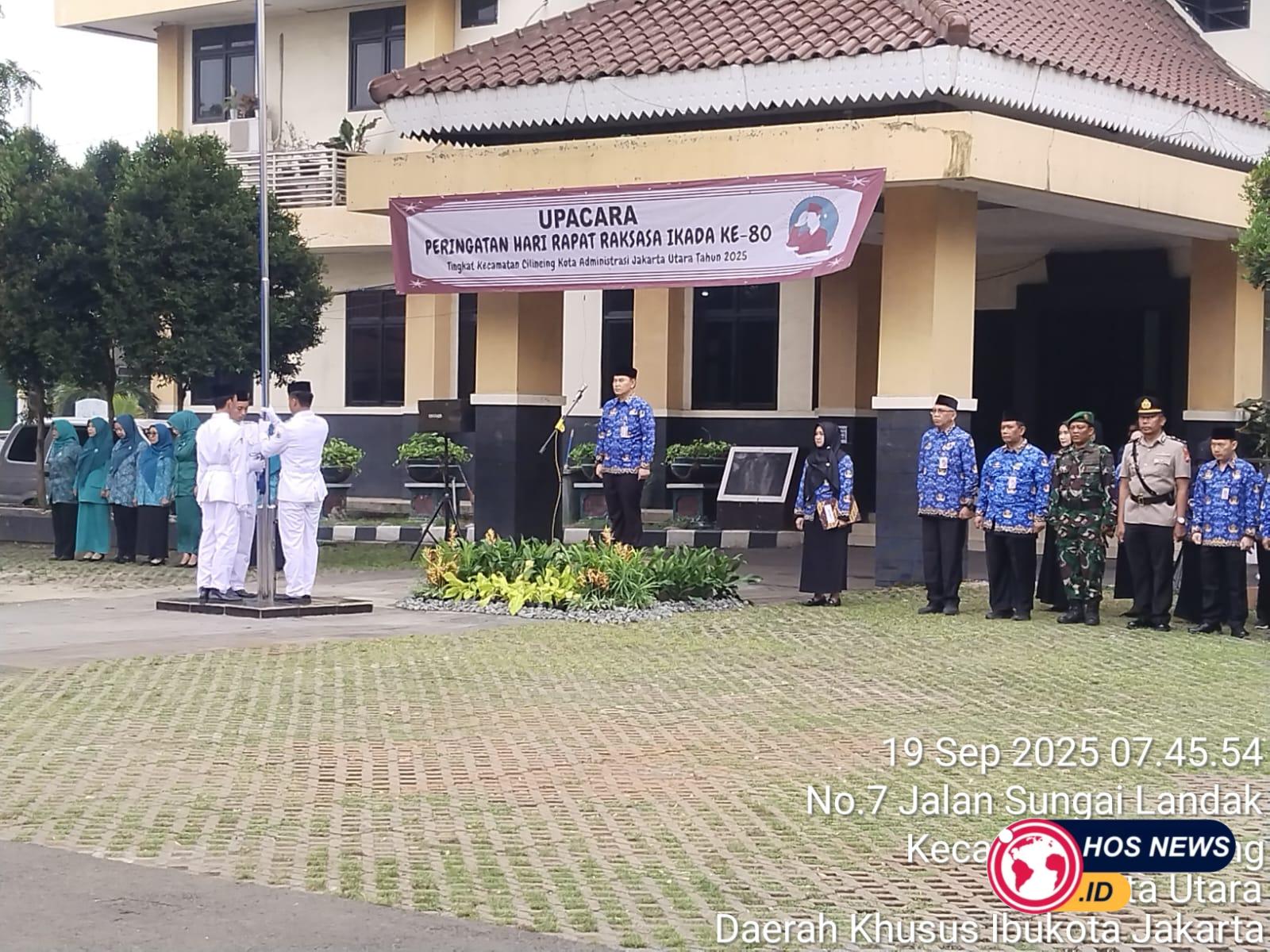 JAKARTA – Dalam rangka memperingati Hari Rapat Raksasa Ikada ke-80, Kecamatan Cilincing menggelar upacara peringatan yang berlangsung khidmat dan penuh semangat nasionalisme, bertempat di halaman Kantor Kecamatan Cilincing, Jakarta Utara, pada Jumat, 19 September 2025.