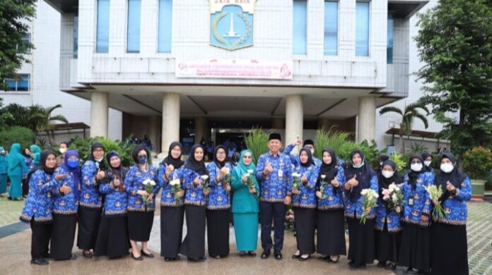 JAKARTA – Petugas upacara peringatan Hari Ibu ke-94 di lingkungan Pemerintah Kota Administrasi Jakarta Utara didominasi oleh kaum perempuan. Hal ini sebagai bentuk partisipasi perempuan di Jakarta Utara dalam mengisi rangkaian peringatan Hari Ibu ke-94 yang mengangkat tema “Perempuan Berdaya, Indonesia Maju”.