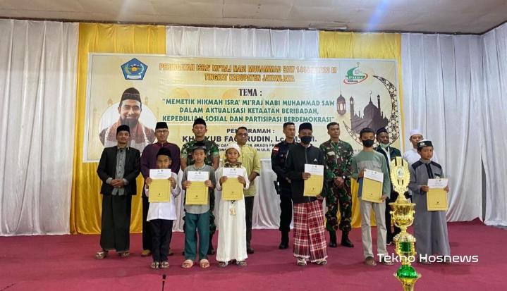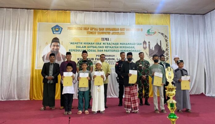 WAMENA, Hosnews.id – Perwira Seksi Teritorial (Pasiter) Kodim 1702/JWY Kapten Inf Nur Abdillah bersama 15 orang anggota menghadiri acara peringatan Isra Mi’raj Nabi Muhammad SAW 1444/2023 M Tingkat Kabupaten Jayawijaya, bertempat di Gedung Serbaguna Kompleks Masjid Agung Baiturrahman, Jl. Yos Sudarso, Distrik Wamena, Kabupaten Jayawijaya, Provinsi Papua Pegunungan, pada Sabtu (18/02/2023).