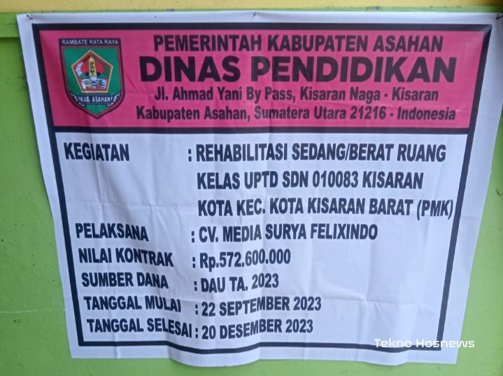 Demikian halnya dengan proyek rehabillitasi Sekolah Dasar Negeri (SDN) 010083 Kisaran Kota yang telah menjadi sorotan sejumlah media lokal yang ada di Asahan maupun media Nasional, karena sebelumnya tidak tanpak terpasang Papan Plank Proyek diseputaran lokasi pengerjaan sementara nilai proyeknya ratusan juta rupiah.