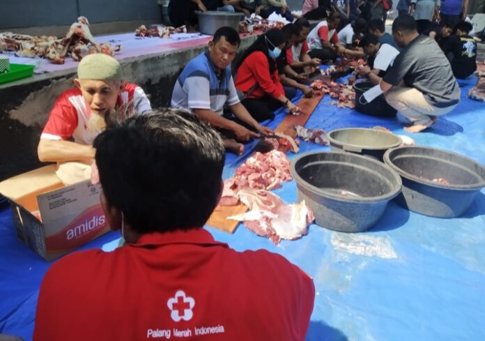 Setelah menggelar Salat Id di Halaman Markas PMI Kota Jakarta Utara, kegiatan dilanjut dengan penyembelihan, pengemasan, hingga pendistribusian hewan kurban.
