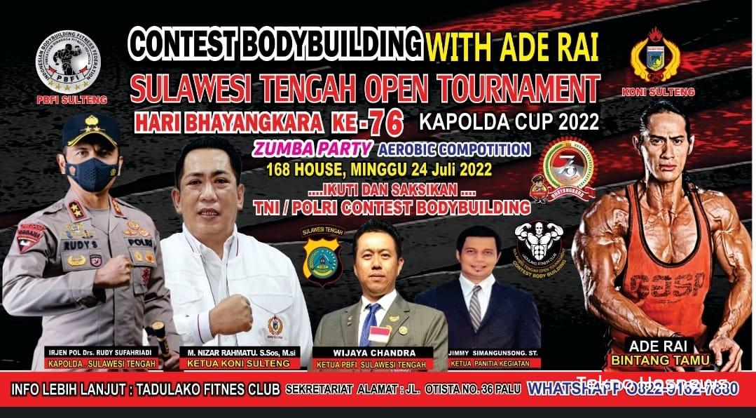 PALU, Rangkaian hari Bhayangkara ke-76 Tahun 2022 masih berlanjut dengan pergelaran “Sulawesi Tengah open tournament body building contest Kapolda Cup 2022” yang akan di selenggarakan pada minggu 25 juli 2022 di salah satu cafe di kota Palu.