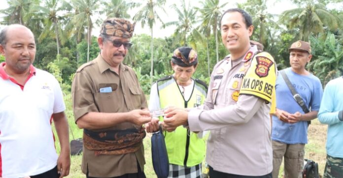“Hari ini kita lanjutkan program tahun lalu dimana kegiatan Kepolisian yang kami lakukan secara proaktif terkait dengan tugas-tugas dalam melihara Kamtibmas, maka dalam membangun komunikasi kami membawa satu program yakni Polisi Bersemi (Polisi Berkebun Dimasa Inflasi), dimana lahan tidur yang ada di Desa atau Banjar kita ajak untuk dikelola secara bersama-sama kami juga akan beri bantuan.” Ujar Pria kelahiran Jakarta 42 tahun silam tersebut.