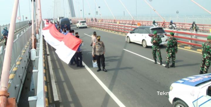 Kabag Ops Polres Bangkalan Kompol Mohammad Bagus Kurniawan, S.H., S.I.K., M.I.K. menjelaskan jika keberadaan personil polri dari Polres Bangkalan untuk mengamankan kegiatan pembentangan bendera sekaligus mengatur arus lalu lintas agar tidak terjadi kecelakaan maupun menghindari penumpukan kendaraan di jembatan terpanjang di Indonesia tersebut.