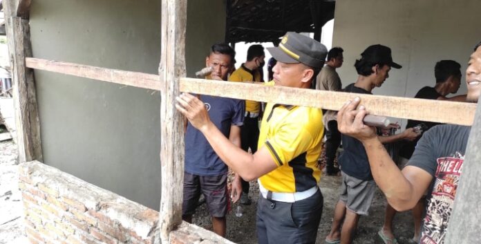 MADIUN – Hadir di tengah masyarakat, Polres Madiun melalui Satuan Lantas Lalulintas bersama komunitas motor membantu warga kurang mampu yang memiliki rumah tidak layak huni.