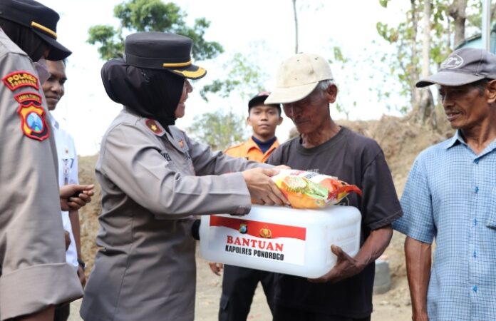 Bantuan sembako dan jirigen, dijelaskan Kompol Meiridiani adalah dari Kapolres Ponorogo AKBP Catur C. Wibowo yang diberikan sebagai wujud kepedulian terhadap sesama kepada warga terdampak di Ds. Duri Kec. Slahung.