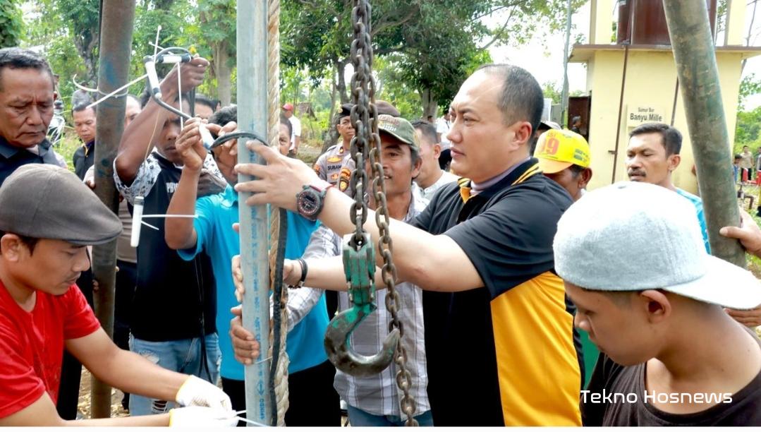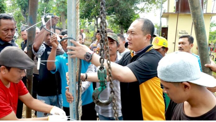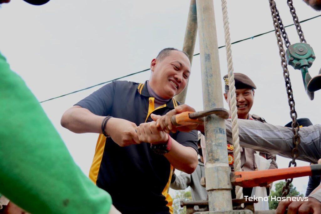 Kapolresta Banyuwangi, Kombespol Nanang Haryono datang langsung memantau pemasangan instrumen sumur bor di lokasi, Rabu (13/6).