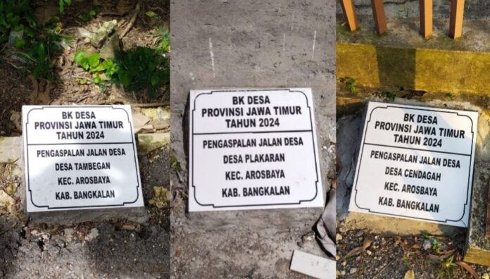 Diketahui ada proyek pengaspalan jalan desa, di kecamatan Arosbaya dan ditemukan tiga titik lokasi. Namun dinilai tidak transparan Bagi masyarakat karena prasasti bantuan tidak mencantumkan anggaran yang di Alokasikan. Diantaranya Desa Tambegan desa Plakaran dan Cendagah.