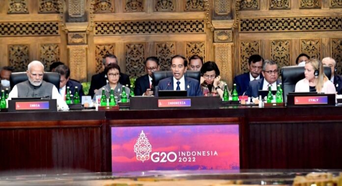 Bali Indonesia -Presiden Joko Widodo secara resmi membuka puncak Konferensi Tingkat Tinggi (KTT) G20 di Hotel Apurva Kempinski, Kabupaten Badung, Provinsi Bali, pada Selasa, 15 November 2022. Dalam pidato pembukanya, Presiden Jokowi menekankan bahwa G20 harus berhasil menghasilkan sesuatu yang konkret (nyata) bagi dunia.