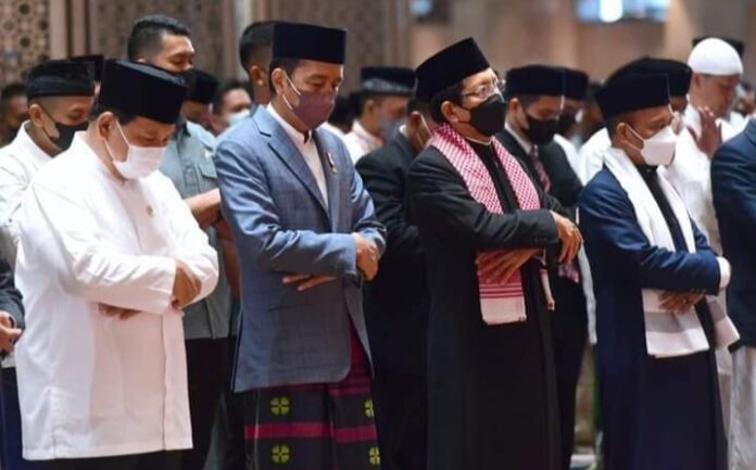 JAKARTA – Presiden Joko Widodo beserta Ibu Iriana Joko Widodo menunaikan salat Iduladha 1443 Hijriah di Masjid Istiqlal, Jakarta, pada Minggu, 10 Juli 2022. Presiden Jokowi memaknai hari raya Iduladha sebagai sebuah ketauhidan dan aktivitas untuk menebarkan kebaikan serta kebahagian kepada sesama umat.