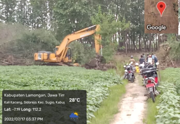 LAMONGAN- Proyek normalisasi irigasi yang terletak di Dusun rambet Desa Kedungbanjar, Kecamatan Sugio, kabupaten Lamongan, Jawa Timur. Dikeluhkan warga sekitar area pertanian yang diduga tanaman miliknya rusak akibat diterjang alat berat excavator atau Bego.