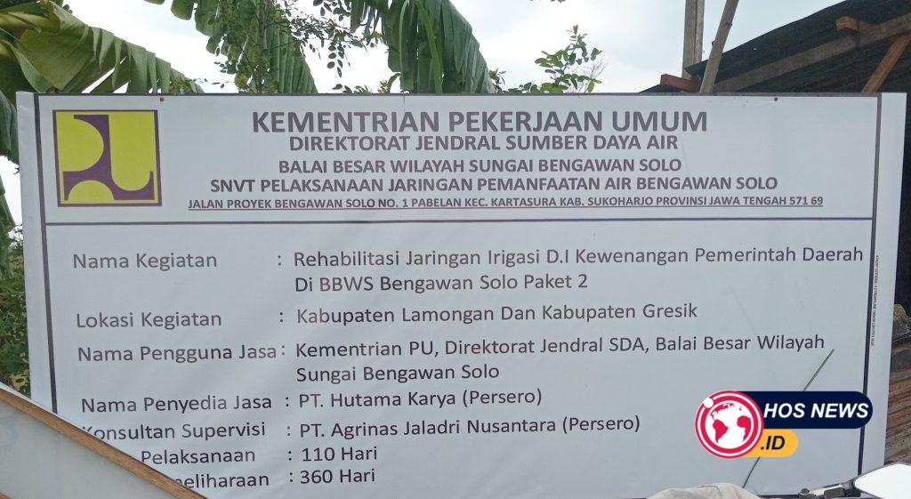 LAMONGAN, hosnews.id – Proyek pemerintah pusat di bawah Kementerian Pekerjaan Umum dan Perumahan Rakyat (PUPR) melalui Balai Besar Wilayah Sungai (BBWS) Bengawan Solo kembali menuai sorotan. Pasalnya, proyek Rehabilitasi Jaringan Irigasi D.I. Kewenangan Pemerintah Daerah BBWS Bengawan Solo Paket 2 yang berlokasi di Kabupaten Lamongan dan Gresik diduga kuat tidak sesuai Rencana Anggaran Biaya (RAB) serta melanggar spesifikasi teknis konstruksi yang telah ditetapkan.