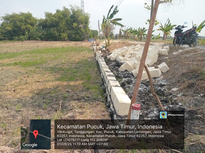 LAMONGAN, hosnews.id – Sebuah proyek Tembok Penahan Tanah (TPT) yang sedang dikerjakan di Desa Tanggungan, Kecamatan Pucuk, Kabupaten Lamongan, terungkap dikerjakan tanpa papan proyek yang seharusnya memuat informasi transparan mengenai anggaran, pelaksana, serta detail teknis lainnya. Proyek ini pun menjadi sorotan tajam setelah pihak Sekretaris Desa (Sekdes) memberikan pernyataan mengejutkan terkait absennya papan proyek.