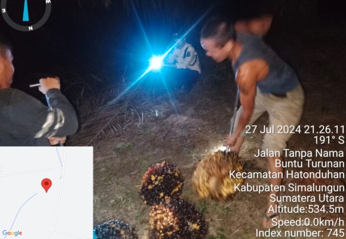 Setelah menyelusuri jejak para ninja dan melakukan pengejaran ninja yang berhasil melarikan diri, sedangkan buah tandan posisi sudah berserak dimana mana di kawasan RG 1 dan 2, Kawasan kebun Desa Bosar Nauli, Kec.Hatonduhan, Kabupaten Simalungun, Provinsi Sumatera Utara.
