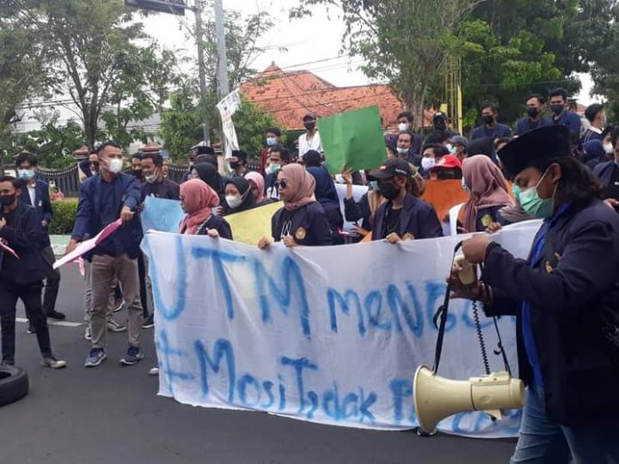 Hosnews.id|| Bangkalan, Puluhan mahasiswa dari universitas Trunojoyo Bangkalan ( UTM ) , menggelar aksi, Kamis 29-04-2021.