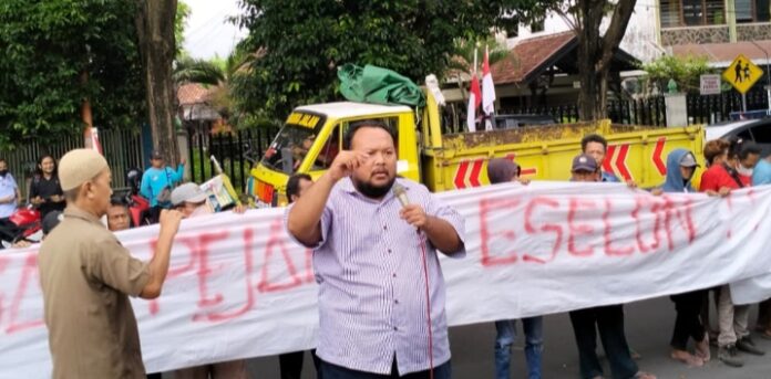 BANYUWANGI – Ratusan Masa dari Pusat Kajian Kebijakan Dan Kebijakan Strategis ( Puskaptis) Kembali gelar Aksi Damai menuntut soal terjadi di Kantor Badan Kepegawaian Pendidikan dan Pelatihan ( BKPP) Banyuwangi yakni yang berinsial NH.