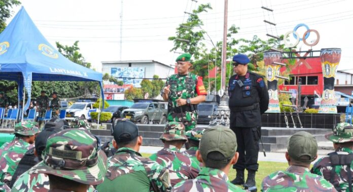 JAYAPURA – Danrem 172/PWY Brigjen TNI JO Sembiring memimpin apel gelar pasukan Pengamanan VVIP bertempat di Lapangan Taman Trisila Lantamal X, Kota Jayapura, Papua, Minggu (27/11).