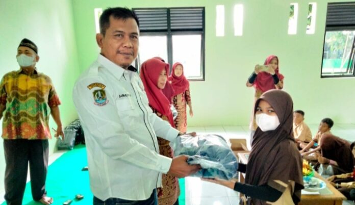 Setelah prosesi peresmian gedung usai,acara dilanjutkan dengan penyampaian bantuan alat-alat belajar dan santunan kepada 20 siswa yang tidak mampu dan yatim semuanya difasilitasi oleh ketua LPM Sumur batu Sarmili Ruly Aji