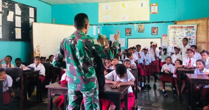 Kab.Keerom – Satgas Pamtas Yonif 132/BS Pos Wembi datang dan memberikan kebahagiaan kepada siswa-siswi SD YPPK WEMBI Di Kp.Wembi, Distrik Mannem, Kab.Keerom, pada hari Jum’at (25/11).