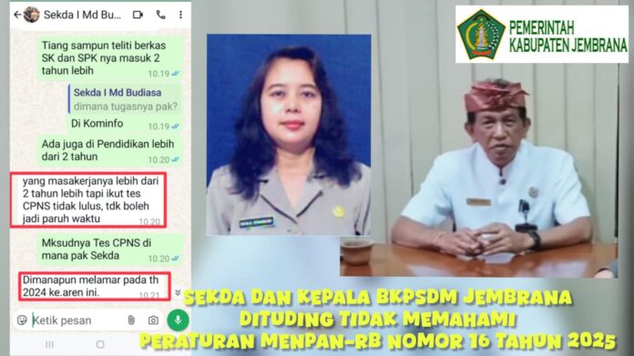 Sekda dan Kepala BKPSDM Jembrana yang tidak memadai dalam memahami regulasi ini dikhawatirkan dapat menghambat peluang tenaga honorer untuk memperoleh status PPPK paruh waktu, yang telah diatur oleh pemerintah pusat demi kesejahteraan mereka. Kejelasan dan pemahaman yang mendalam tentang peraturan ini sangat dibutuhkan untuk memastikan keberlanjutan tenaga honorer dalam sistem pemerintahan. (Tim/Red)