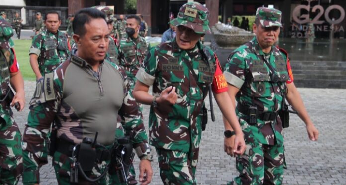 TNI menjadi garda terdepan dan penanggungjawab Keamanan KTT G20 di Bali berdasarkan Keppres RI Nomor 12 Tahun 2021 tentang Panitia Nasional Penyelenggara Presidensi G20 Indonesia Tahun 2022.