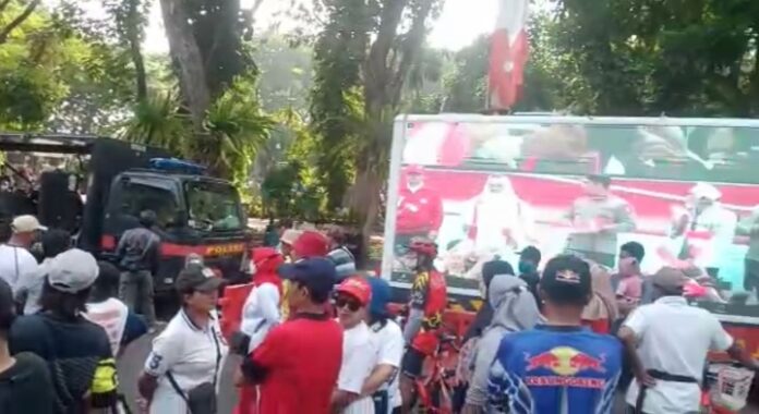 SURABAYA- Anjungan Bergerak Kamtibmas (Anggrek) Binmas Semeru dari Ditbinmas Polda Jatim, bekolaborasi dengan Direktorat lalulintas dan Bidhumas Polda Jatim, menghibur masyarakat di Car Free Day (CFD) Taman Bungkul Surabaya, pada Minggu (28/8/2022). Selain itu, Polda Jatim juga secara langsung menyiarkan acara Kirab Merah Putih dari kawasan Bundaran Hotel Indonesia Jakarta melalui Mobil Videotron polda Jatim.
